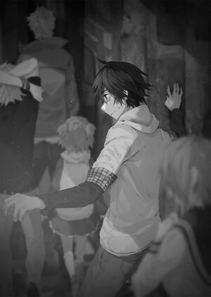 Jika dihitung jumlah orang yang berada di sana, ada delapan anak laki-laki termasuk pria berambut perak, pria berambut berantakan, dan pria itu sendiri, dan empat anak perempuan termasuk gadis berpenampilan mencolok, sehingga jumlah total mereka adalah 12 orang. Suasananya masih cukup gelap sehingga dia tidak bisa melihat sosok setiap orang secara detail, tapi jika dinilai dari sosok, pakaian, gaya rambut, dan raut wajah secara umum….. pria itu sama sekali tidak mengenali mereka.
